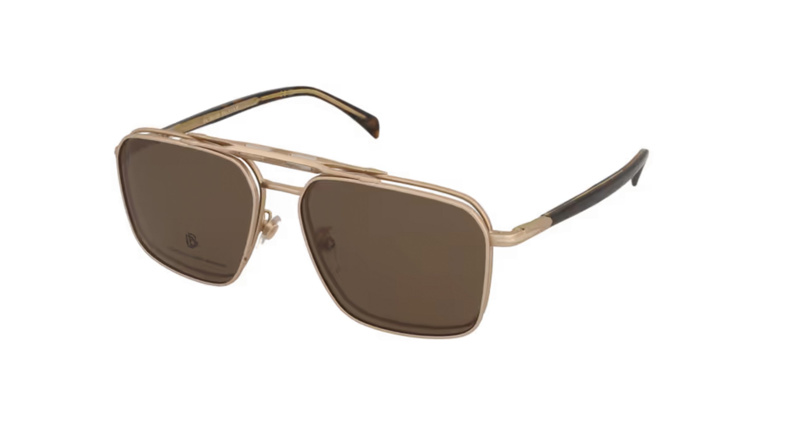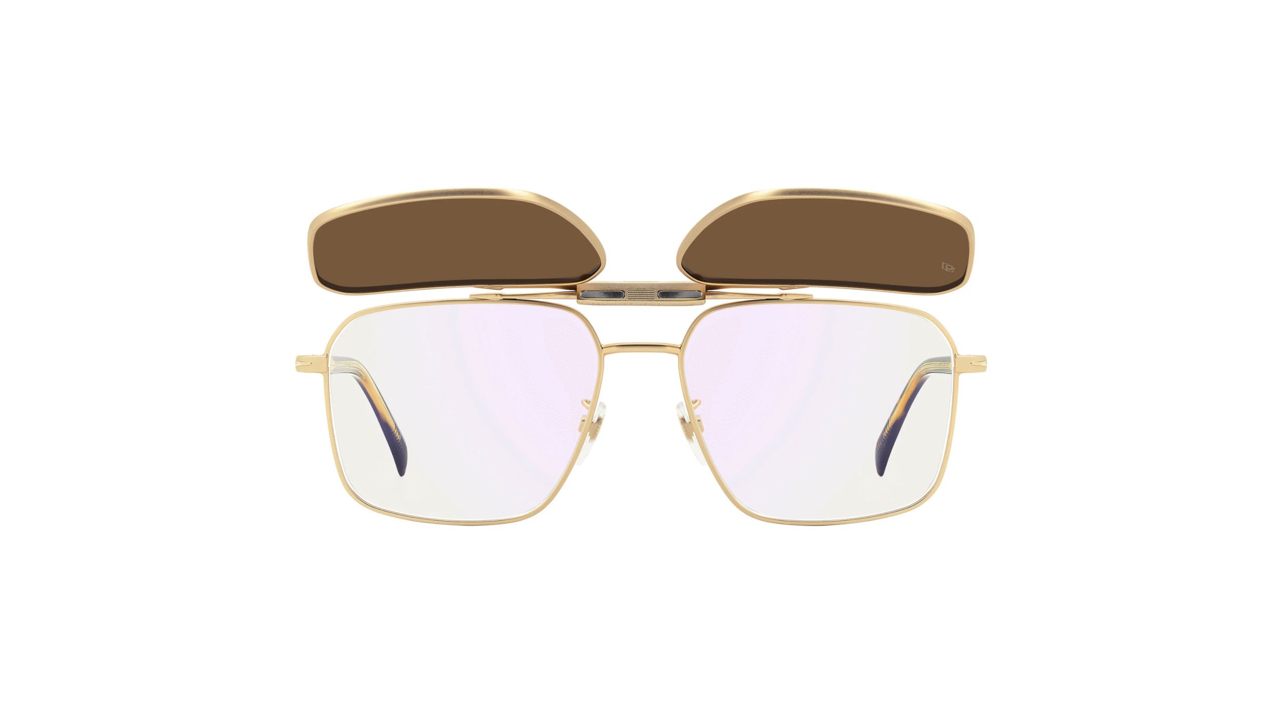 Złote oprawki David Beckham DB 1187/G/C 8SO z nakładką przeciwsłoneczną – styl i funkcjonalność w jednym.