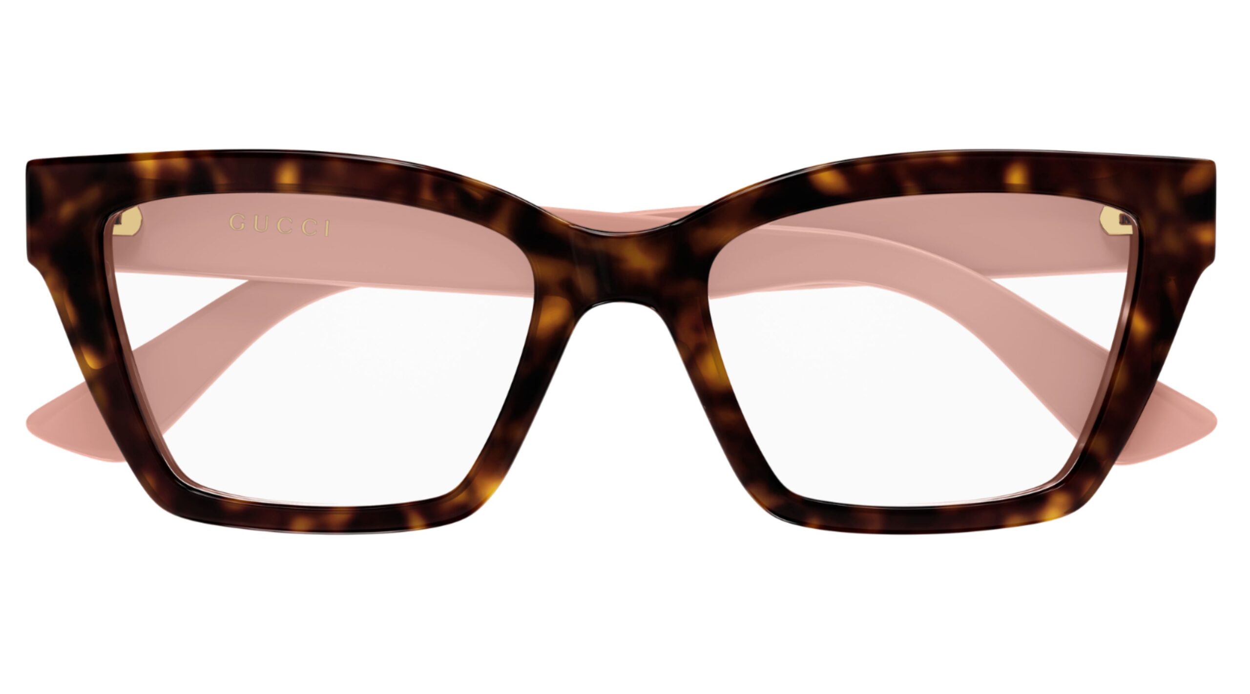 Oprawki Gucci GG1715O 017 to elegancki model korekcyjny o kobiecym charakterze i nowoczesnej formie. Ramka została wykonana z wysokiej jakości acetatu w odcieniu ciemnej havany, który nadaje całości ponadczasowego stylu i subtelnej głębi kolorystycznej. Kształt typu cat-eye z lekko zaznaczonymi, geometrycznymi liniami pięknie podkreśla rysy twarzy i dodaje stylizacji wyrazistości. Pełna konstrukcja zapewnia trwałość oraz komfort noszenia na co dzień. Na zausznikach znajduje się charakterystyczne logo GG, które podkreśla luksusowy charakter projektu i rozpoznawalny styl marki Gucci. Model Gucci GG1715O 017 łączy modny design, włoską elegancję oraz wysoką jakość wykonania.