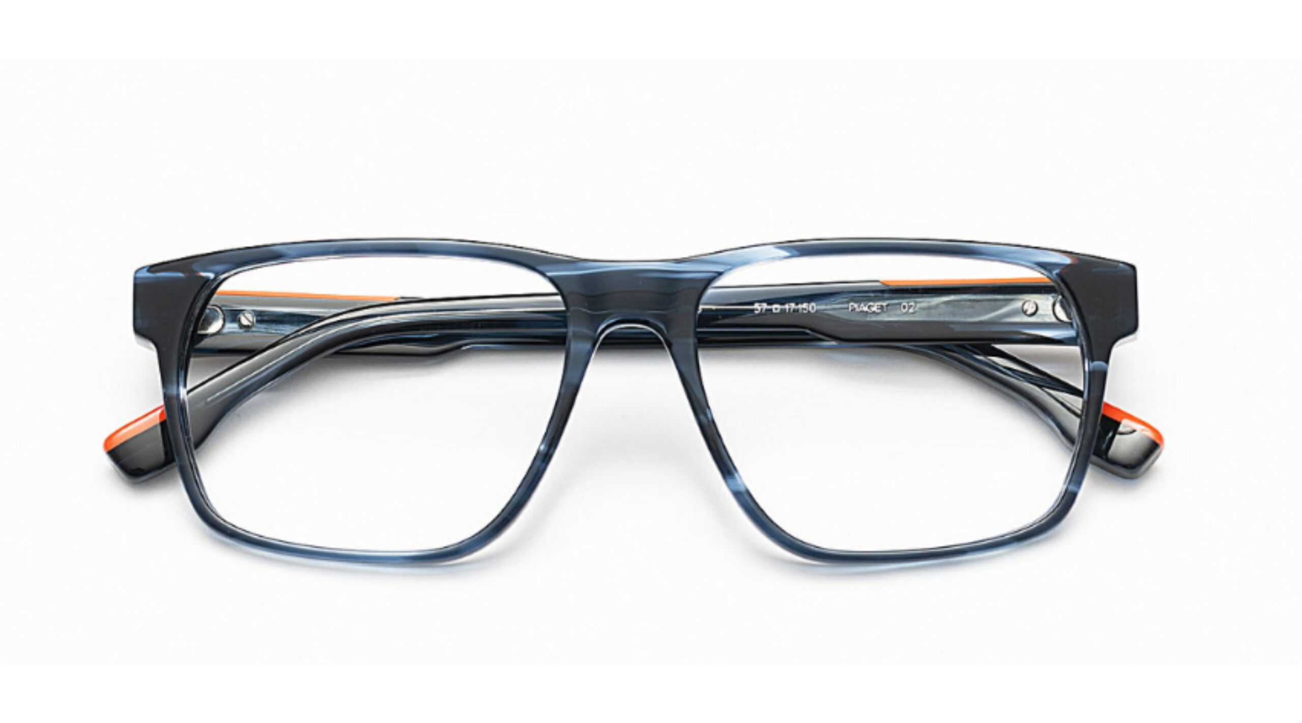 Model wykonany został z wysokiej jakości acetatu, który zapewnia trwałość oraz komfort użytkowania. Kolor 02 to nowoczesne połączenie transparentnych odcieni granatu i grafitu, nadających oprawkom głębi i wizualnej lekkości. Subtelne pomarańczowe akcenty po wewnętrznej stronie frontu oraz na końcówkach zauszników wprowadzają wyrazisty, designerski kontrast, podkreślając nowoczesny charakter modelu, przy jednoczesnym zachowaniu eleganckiej formy.